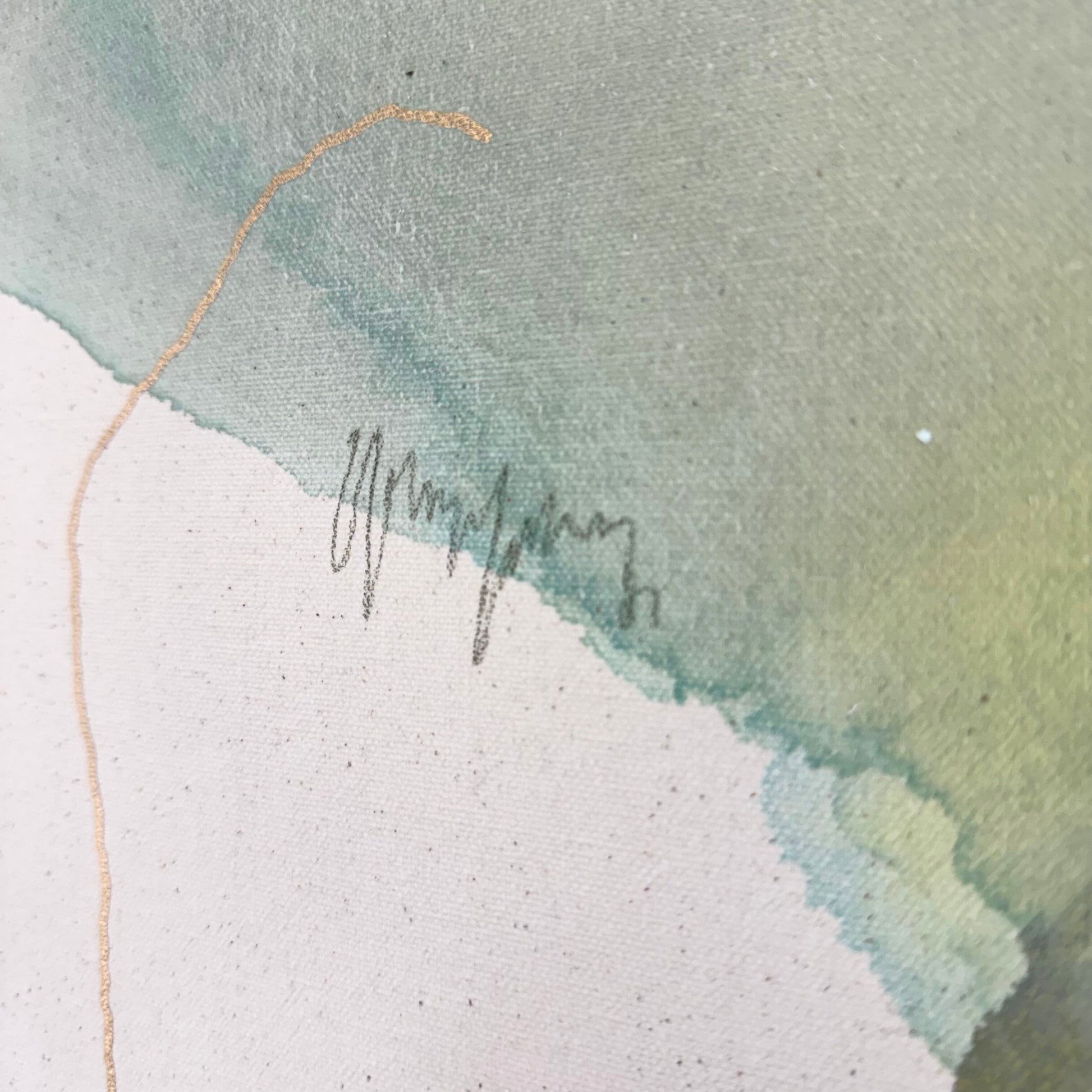 - Acrylic and oil-based metallic pencil on raw cotton canvas